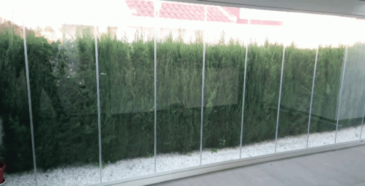 When closed, Glass Curtains protect and reduce the effect of wind, rain, dust and noise. When open, your terrace or any other area is back to summer mode , your view is interrupted, giving you a connection with the landscape outside.